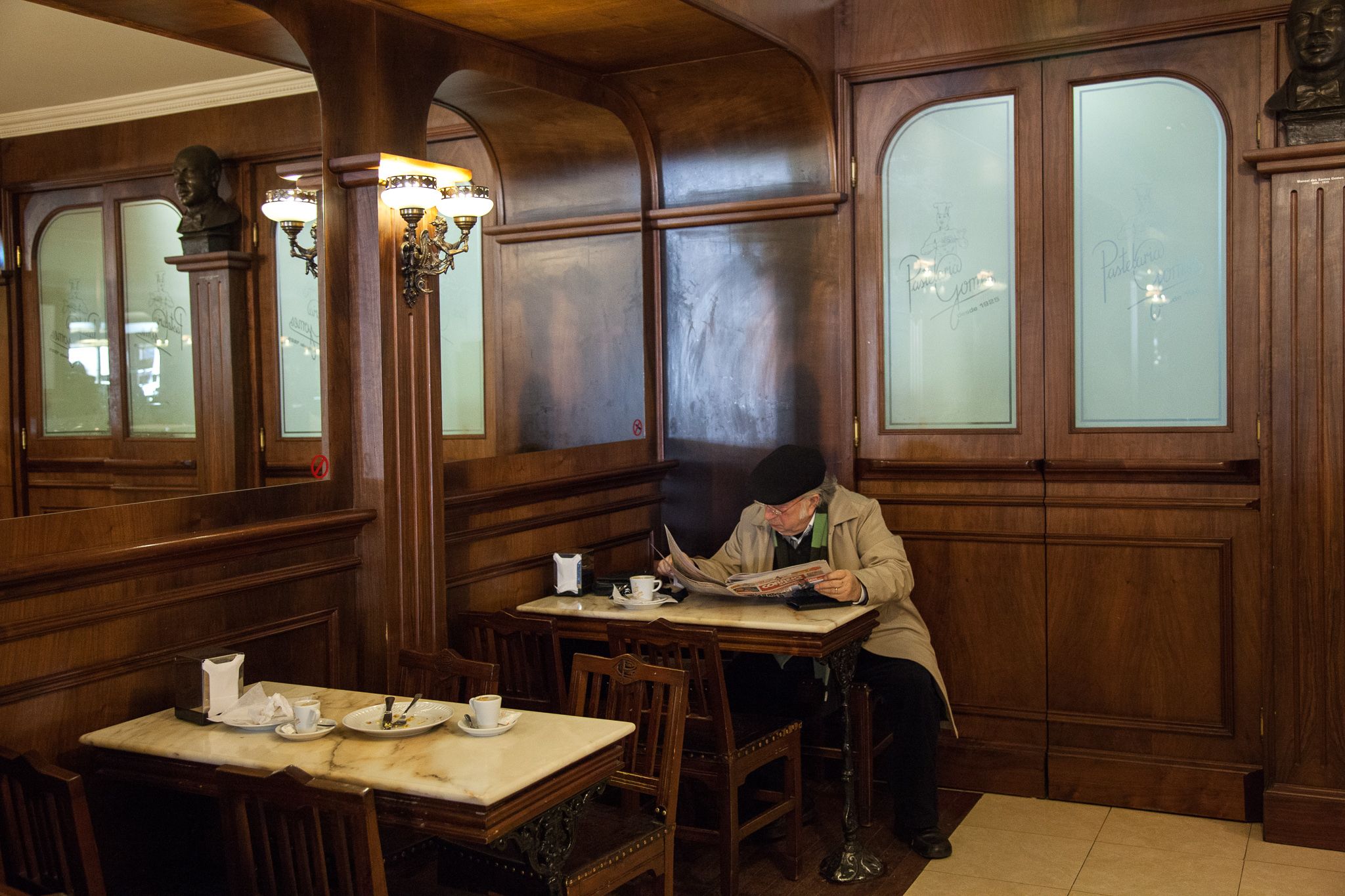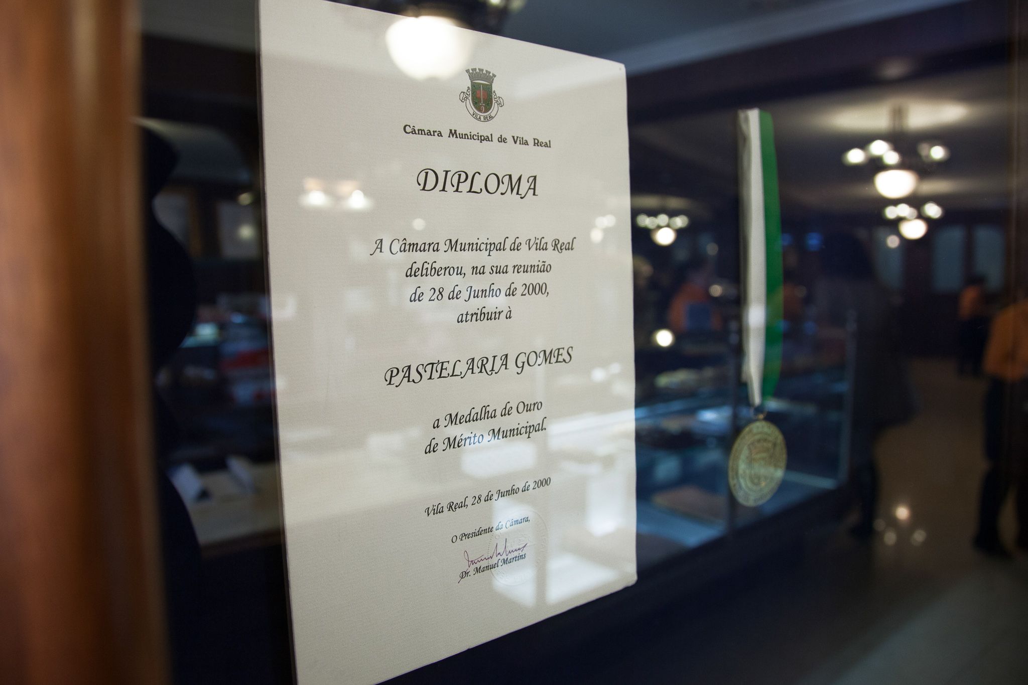 If Vila Real were represented by a café, it would have to be the Pastelaria Gomes. A patisserie, as such, which could even lose its charm as a Café. But how to lose this charm if it was precisely because of the seduction of its own confectionery, linked to the main building in the historic centre - one of the highlights of the Municipality as far as Architecture is concerned, and built in the 1950s - that this confectionery became the embassy for the city in places such as France, Switzerland and Germany? This is also thanks to the journeys made by the sweet confectionery in the company of Portuguese immigrants. Savoury confectionery such as the Covilhete, made of puff pastry and minced meat. We may be able to get the recipe but we will never have the almost centenary way of making them, along with the Tocinho-do-céu (literally Bacon from heaven) almond pastries, better known as Cristas or Velvet Pudding. It is no secret, but rather competence transmitted from generation to generation, from Manuel dos Santos Gomes, who started the patisserie in 1925, returning to Portugal after spending some time in countries like Brazil and Angola. The growth of the city has accompanied the growth of the Pastelaria Gomes, or vice versa, and it is therefore natural that a Tea Room has opened followed by a Biergarten, to complement and diversify the services offered to the city itself. Friends, from the oldest to the youngest, take advantage of the aforementioned Architecture of the space, as well as the decoration and furniture, which maintains the original outline - with only the counter being redesigned in the 1990s, as a social and cultural meeting point - under sumptuous lamps, glass windows, mirrors and a bust of the founder. However, if the bust is of Manuel Santos Gomes, it was his wife (Maria Conceição de Sousa Magalhães Gomes) who reinvented the confectionary. For example, the famous Covilhetes mentioned above are richer because of the puff pastry introduced by her. If you think we have written too much about Covilhetes, you should know that, along with the Mateus Palace and its Mateus Rosé, these pastries are another classic image of a city which will never miss out, such as Gomes, on the cafe route and the future.